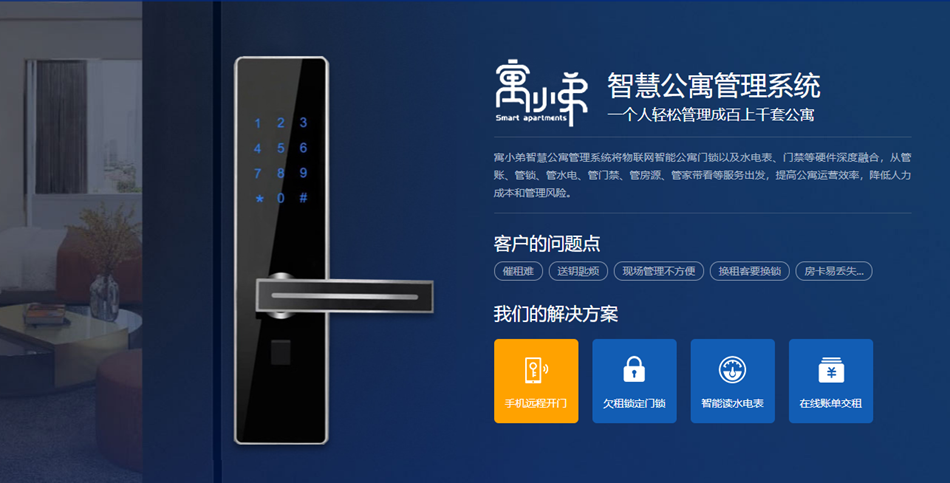 以上就是【 寓小弟智慧公寓管理系統,智能公寓管家】http://www.9918682.cn/xwzx/cjwt/307.html的相關內容, 文本由寓小弟智能鎖整理發布,如需轉載,請帶上本站鏈接。